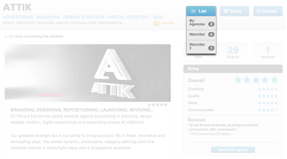 4. Build your shortlist by saving the agencies you like using the "List" button.