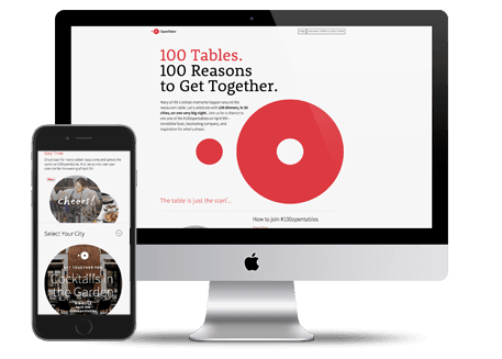 The Challenge - In celebration of Open Table’s new branding effort and streamlined app, the brand wanted to create a national social based experience that put the top 100 tables in the country into their customers hands. The 100 Tables, 100 Reasons to Get Together campaign included a digital experience around Open Table’s concept to host dinner at 100 restaurants in 30 cities across the US on one night using social media as a method of entry.
