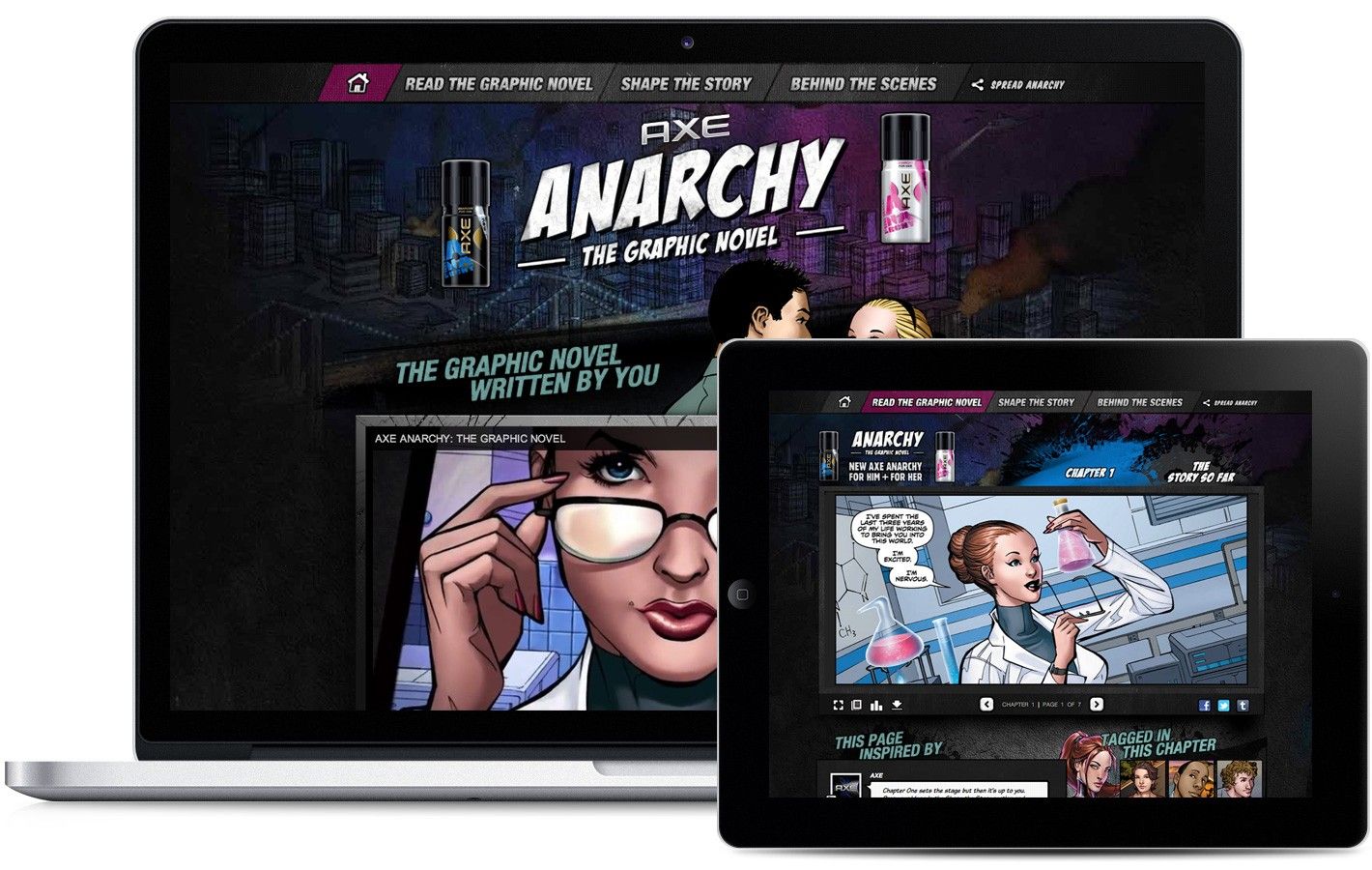 AXE is a consumer brand best known for its ads and products geared towards young men, but in 2012 parent company Unilever took a new direction by creating its first fragrance for both men and women, AXE Anarchy. We collaborated with Razorfish (New York) and BBH (London) in a global campaign to promote the new product line by creating a high-end, custom YouTube channel application. The concept centered on a social-media driven, user-generated graphic novel, unfolding in real time as users interacted with the story and suggested how it should develop.Client