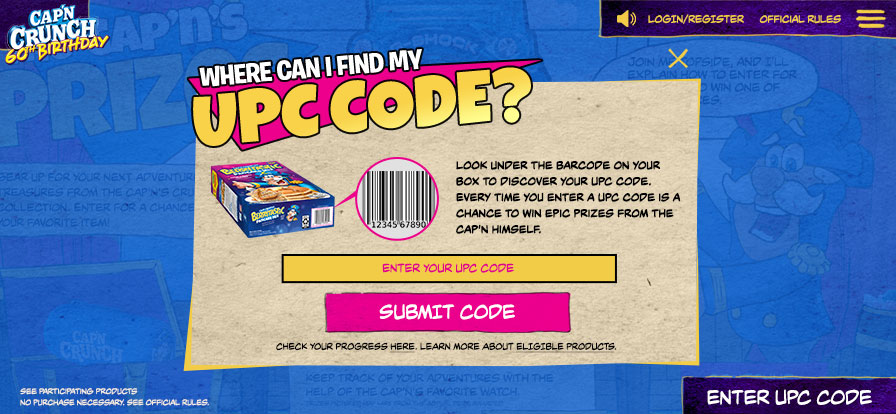 Cap'n Crunch 60th Bday Campaign - Scannable Cereal Box Packaging Experience & Instant Win PrizingClient