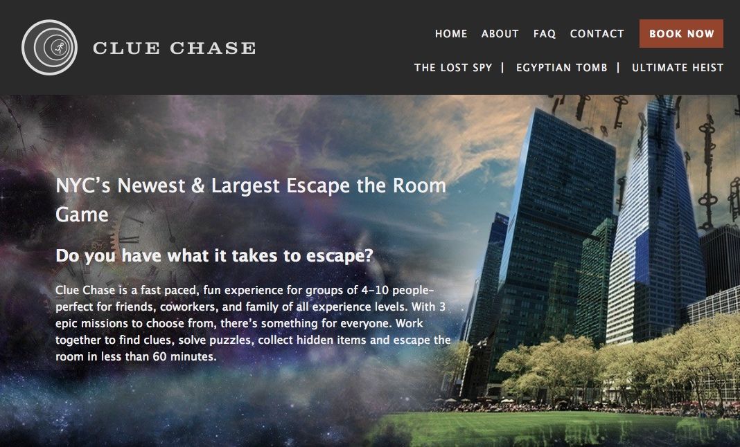Clue Chase is a newly opened “escape the room” game space, located in the Grace Building at Bryant Park, in New York CIty. We were approached by Clue Chase prior to their launch to design a fun, exciting brand identity that works well with their unique concept. The website for Clue Chase acts as an extension of, and headquarters to, their brand story. We designed the website to be incredibly immersive; each game room explores its own mission and story both visually and within the content, while maintaining common threads that tie the website into a cohesive whole.Client