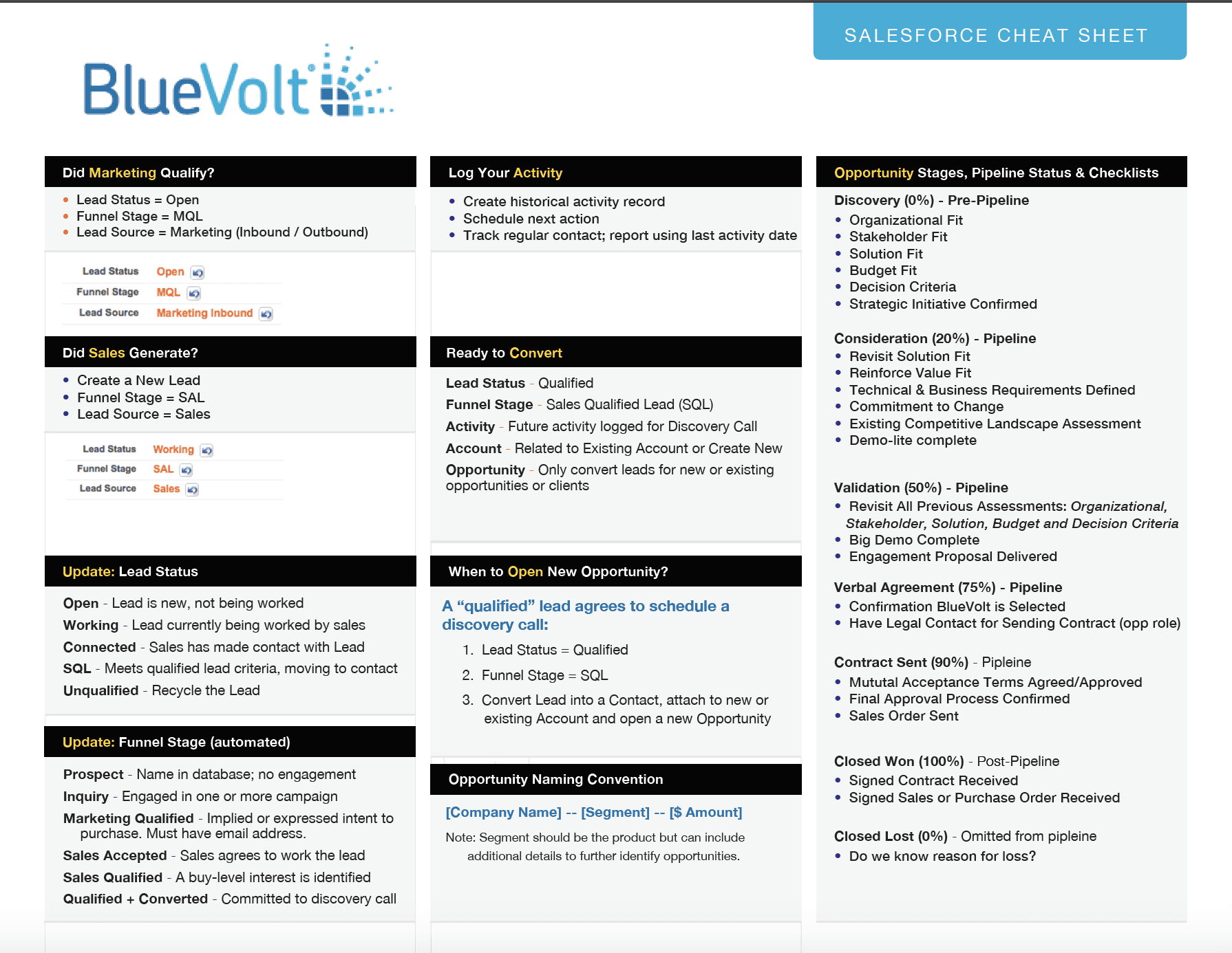 We partnered with the sales and marketing teams at BlueVolt to create and manage an operational strategy. Through process definition and technology configuration we enabled BlueVolt to improve productivity. BlueVolt moved to a data driven team, allowing them continue to optimize the sales cycle.Client