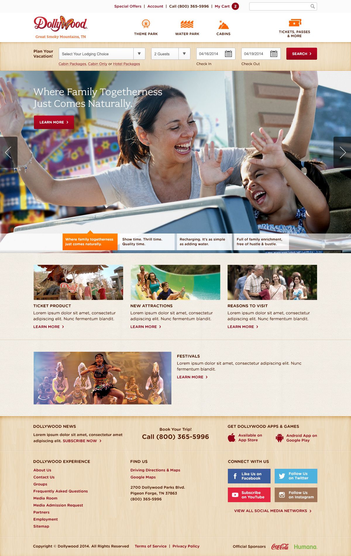 Dollywood engaged three squared for a re-design of Dollywood.com (one of the premiere amusement parks in the country).