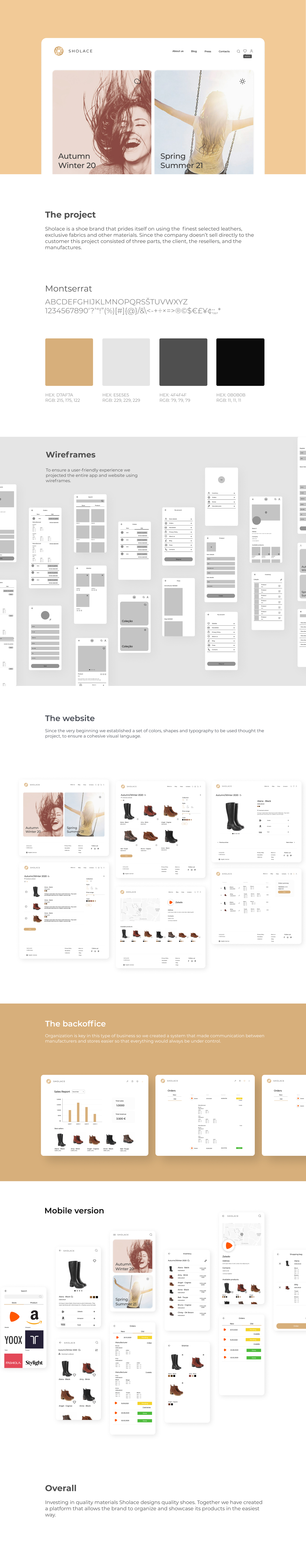 Sholace is a shoe brand that prides itself on using the finest selected leathers, exclusive fabrics and other materials. Since the company doesn’t sell directly to the customer this project consisted of three parts, the client, the resellers, and the manufactures.Client