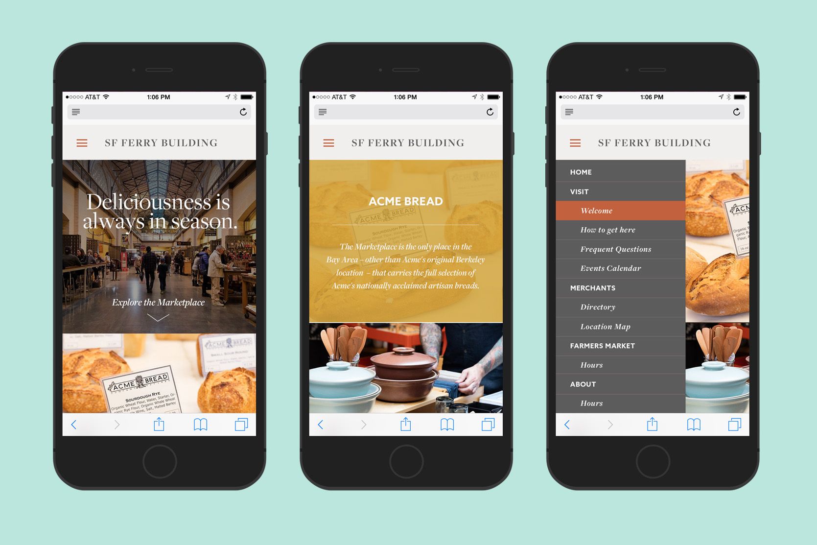 The result is a tasteful combination of a both modern, mobile-friendly site and a beautifully rich visual experience that will guide visitors from all around the world through the iconic San Francisco food destination that is the ferry building marketplace.