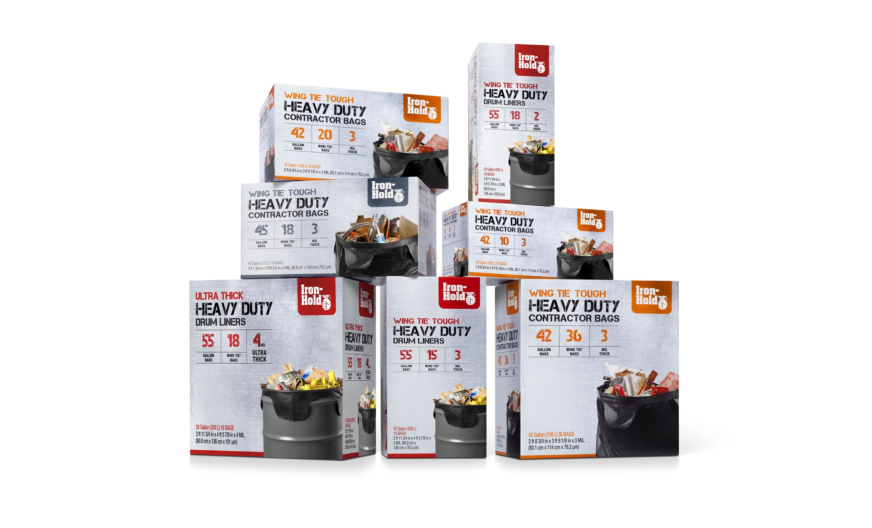Berry Plastics originally wanted us to get their Iron-Hold trash bags color family consistent, but they quickly added onto that by having us do slight revisions to their opening price point/inexpensive packaging. After seeing what a big difference the slight changes made, they then wanted to see all-new creative.Client