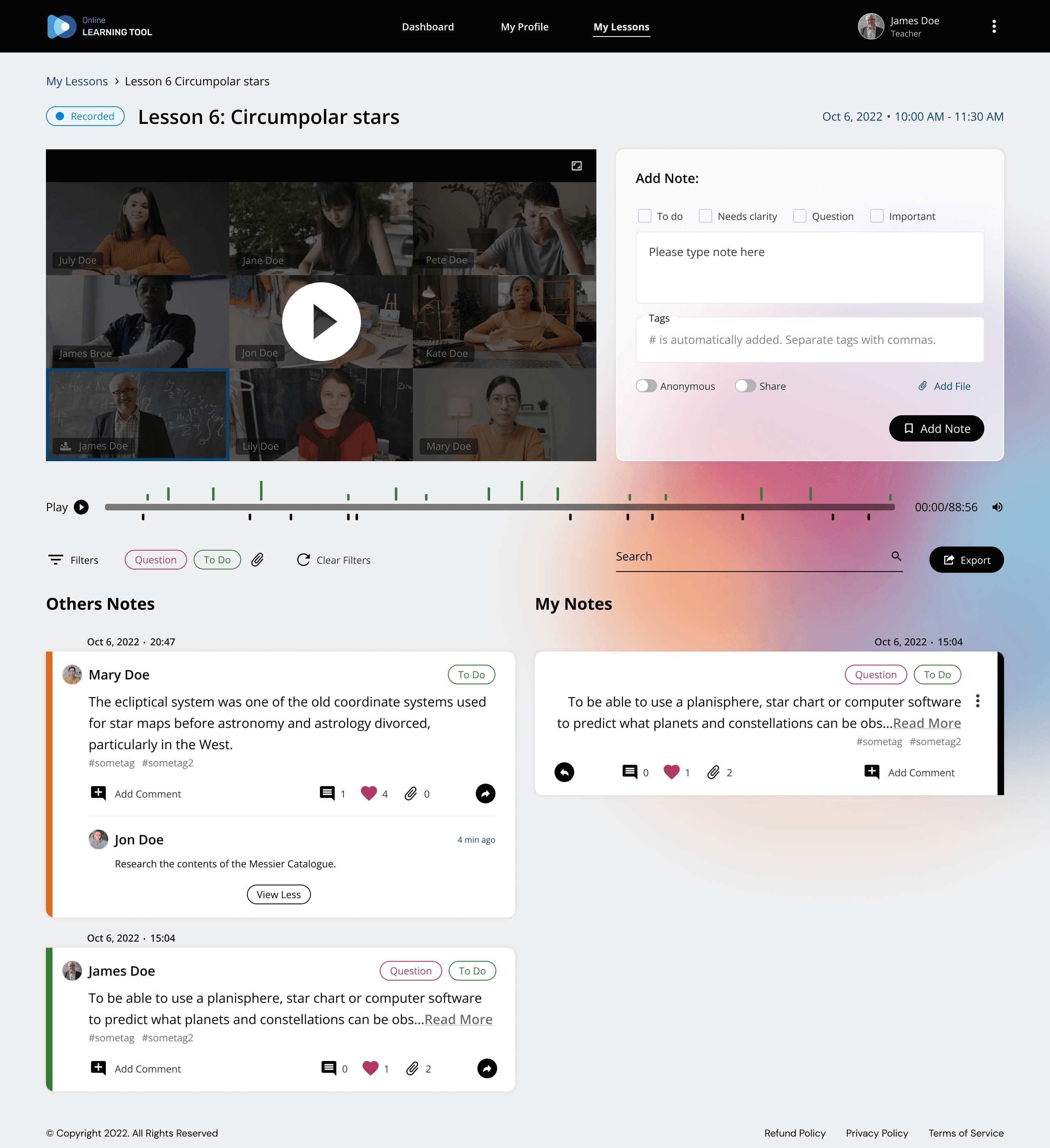 SaaS-based e-Learning Platform for teachers & students to share, create, review notes in a real-time audio / video environment