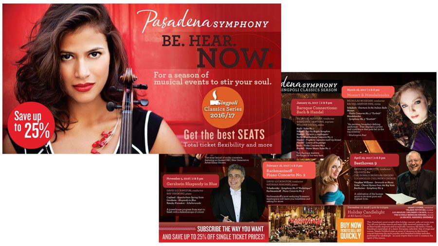 Since 2012, Counterintuity has served as the outsourced marketing arm for the renowned Pasadena Symphony and POPS, increasing revenue and ticket sales for events at the Ambassador Auditorium, the county Arboretum, and elsewhere. Our eye-catching print and digital work has scooped up awards while directly contributing to double-digit sales growth.Client
