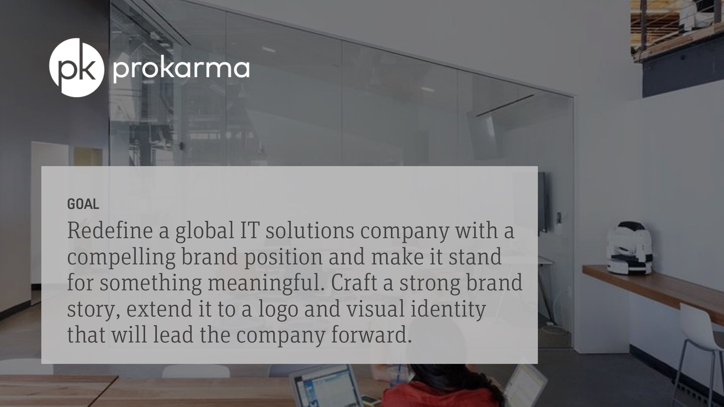 Redefine a global IT solutions company with a compelling brand position and make it stand for something meaningful. Craft a strong brand story, extend it to a logo and visual identity that will lead the company forward.