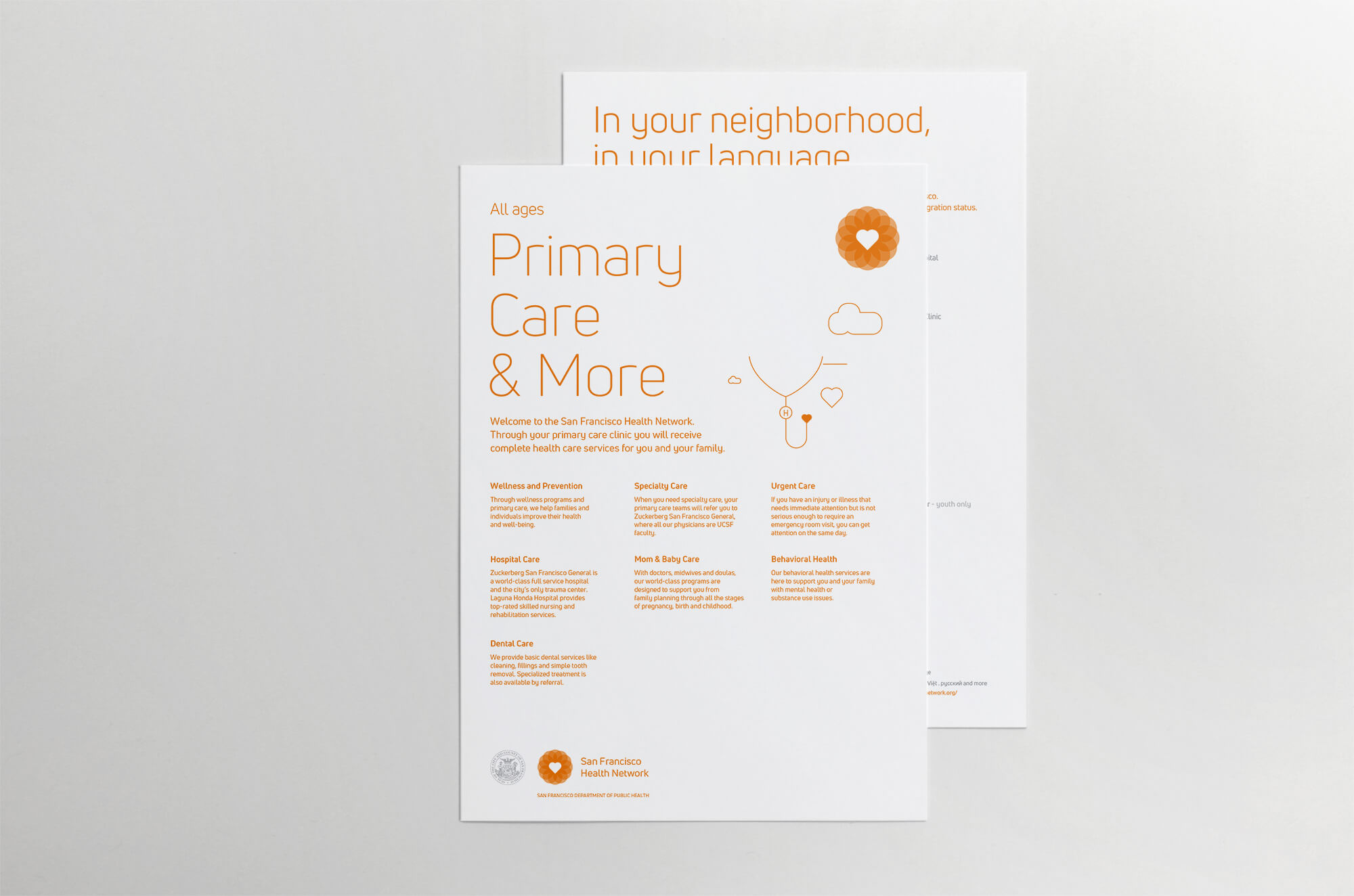 The San Francisco Health Network (San Francisco’s public health care system) was functioning as a loose confederation of clinics and hospitals rather than a unified system. The staff at these clinics and hospitals had trouble describing the Network and articulating its benefits and promises to the patients and the community. In addition, many of the health care sites within the Network had their own identities, logos, and unique ways of describing their services, which created a confusing experience for all.