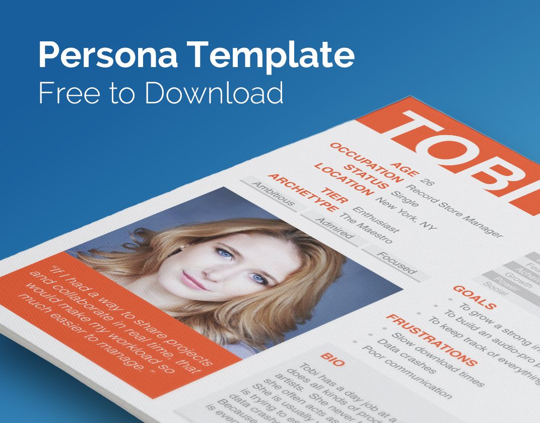 There are a lot of examples out there of how to put together personas. But frankly, we weren’t crazy about any of them as a whole, so we pieced together our own from a few examples and then spiced it up a bit with some extra psyche profiling. We’ve got personality archetypes, Myers-Briggs types, core motivators, you name it.