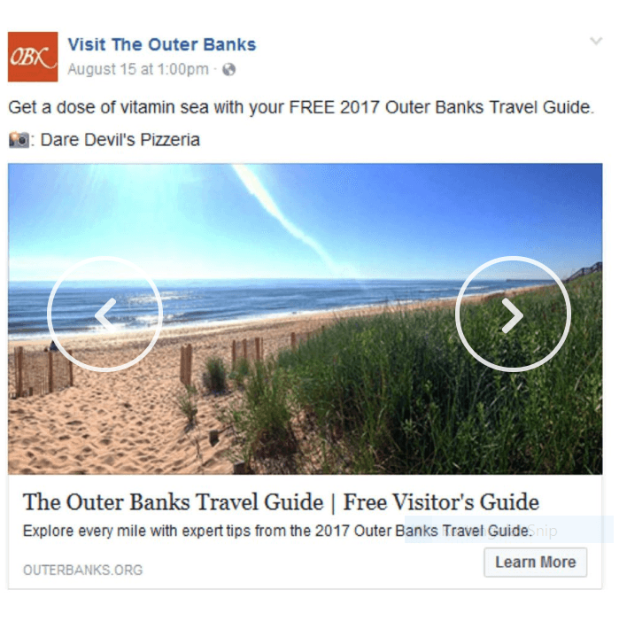 Through an optimized paid media strategy, Ignite Social Media successfully increased conversions by 79% & increased interest in visits to the Outer Banks of North Carolina.Client