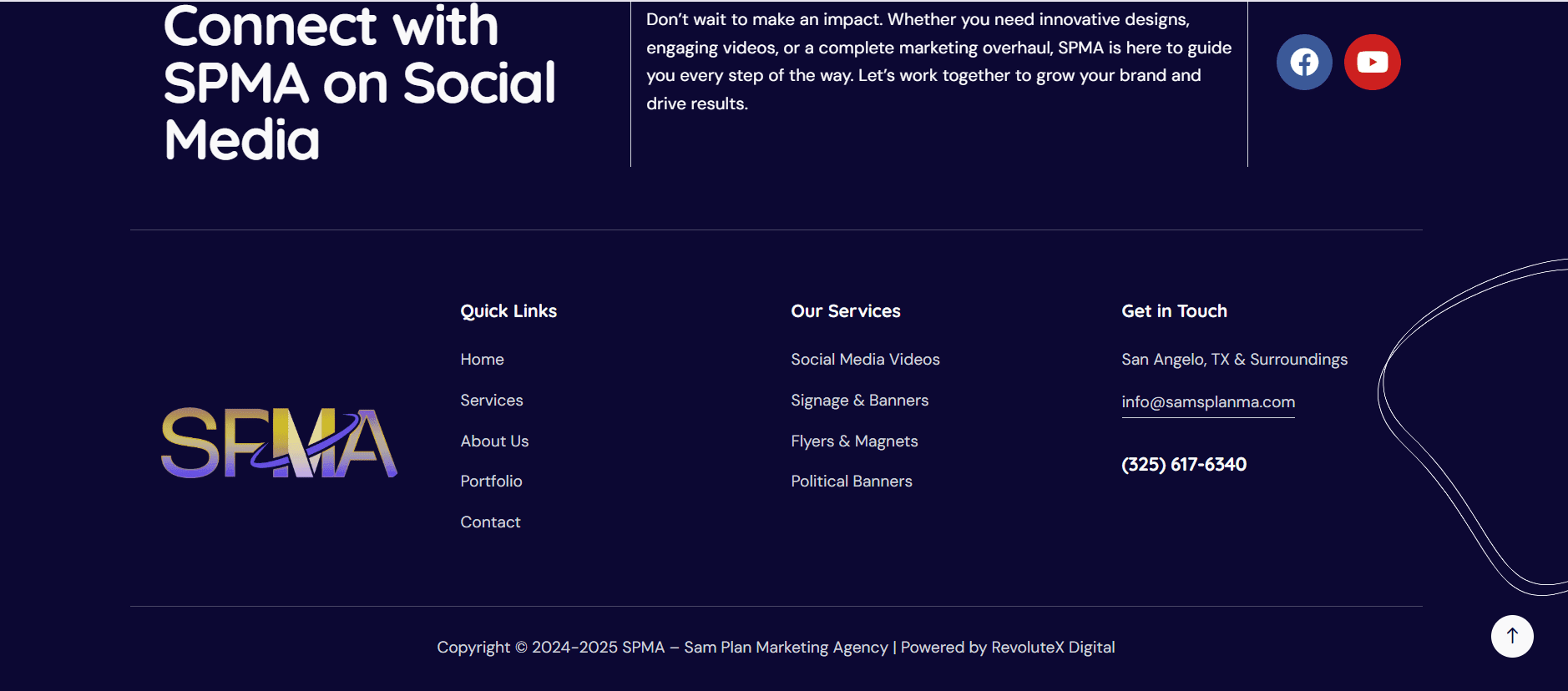 Revolute X Digital successfully designed and developed a wordpress & custom website for Sam Plan Marketing Agency, focusing on modern design, user experience, and lead conversion. The site was built to reflect the agency’s brand identity and services while ensuring mobile responsiveness, fast loading speed, and SEO optimization. Our team worked closely with the client to create a clean, professional layout with clear navigation and integrated contact forms to generate leads. The result is a visually appealing, fully functional website that enhances online credibility and positions Sam Plan Marketing Agency for growth in a competitive digital landscape.